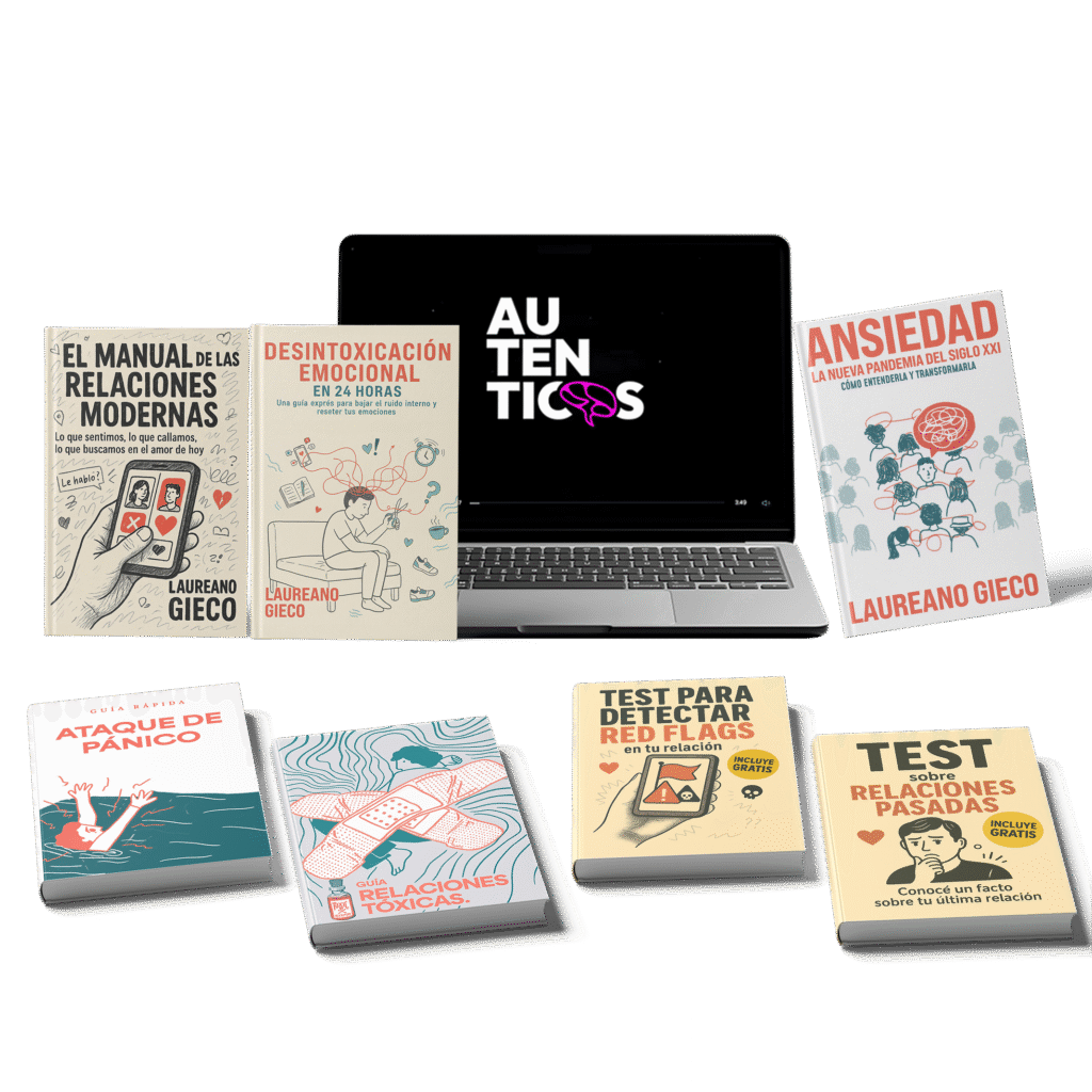 Incluye mi nueva guía exclusiva “Desintoxicación Emocional en 24 horas”, mis libros sobre ansiedad y relaciones modernas, el acceso a Auténticos y bonus digitales descargables.