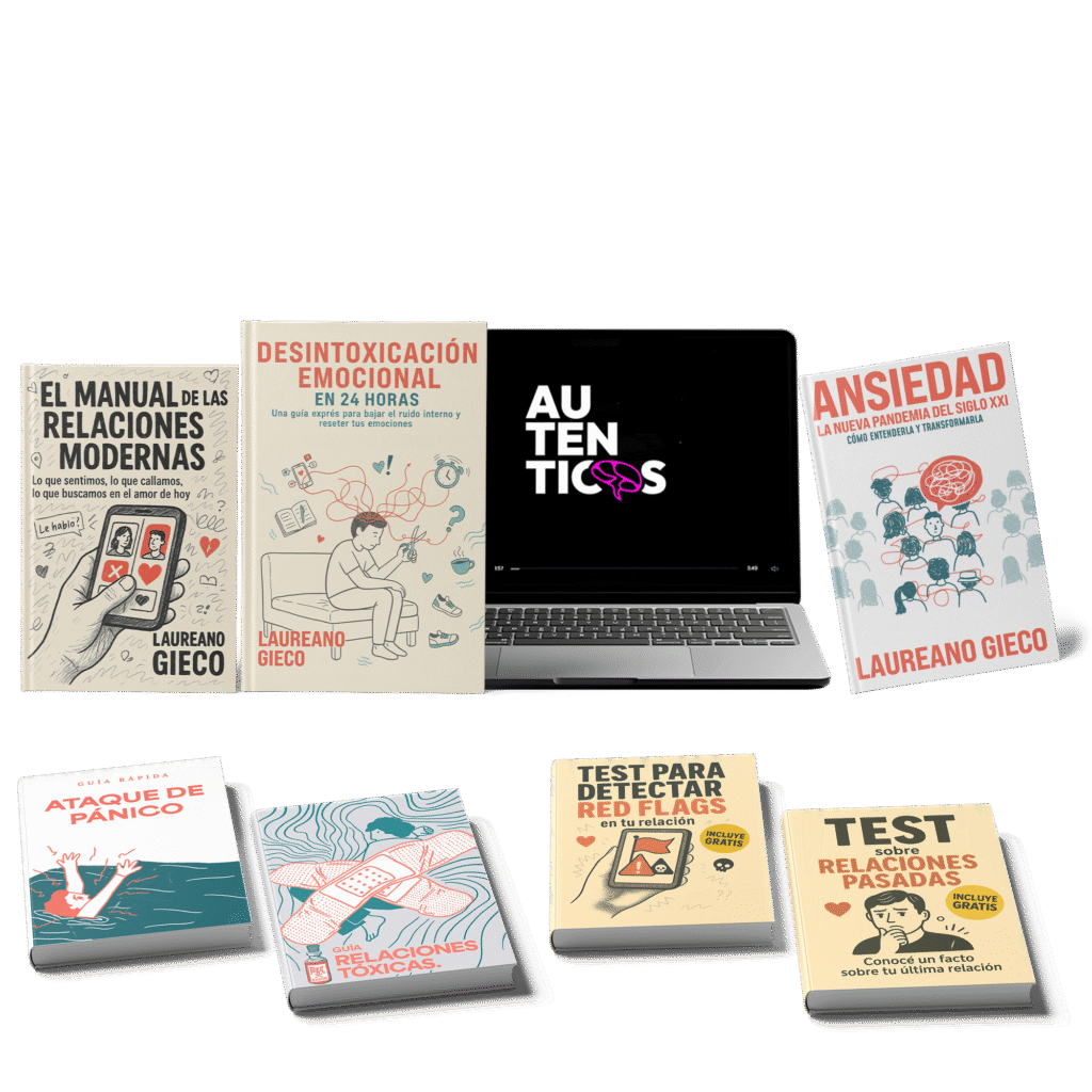 Si llegaste hasta esta parte de la página es porque te estás tomando en serio tu proceso emocional. Por eso, si comprás el combo del Día del Reset Emocional, además de la guía, los libros y Auténticos, te voy a regalar 3 recursos extra para ir todavía más profundo: